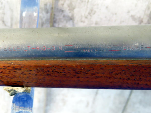 BLE; nice custom; believe a Model 37 barrel was custom made to be a Model 87; 28" Rnd. Steel barrel; no bluing; nice wood w/metal crescent butt plate; FC; 3" chamber; SN#44042