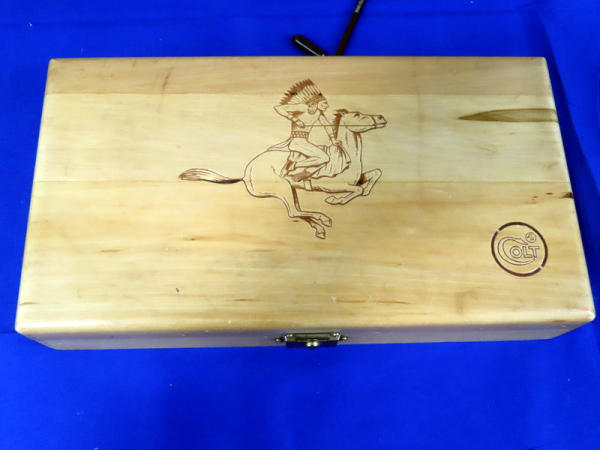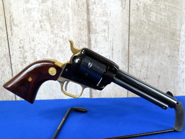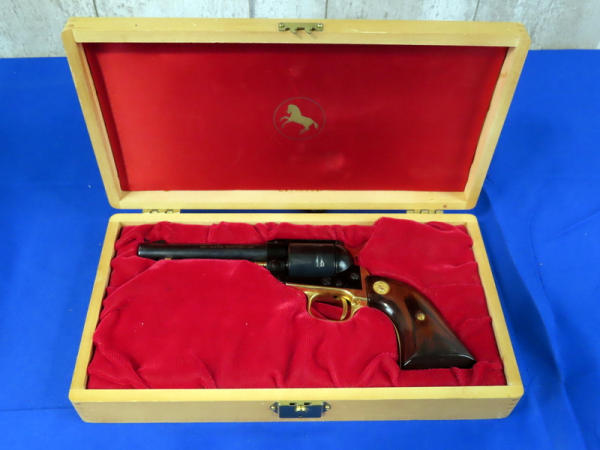 BLE; nice; has wood display box; 4.75" BBL; lots of gold accents; wood grips; 6-shot fixed cylinder; made in USA; SN#37DT