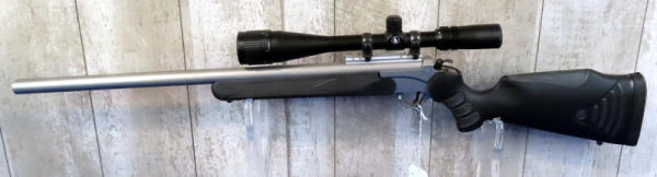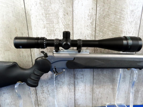 BLE; nice; 26" Stainless barrel; easy break action; black synthetic stock; Tasco scope; hammer extension; made in USA; SN#PS47502