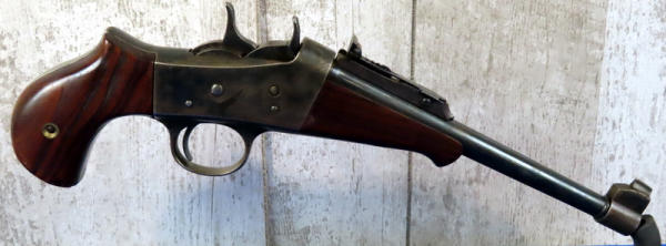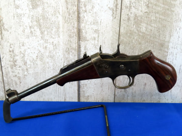 BLE; nice; 7.5" BBL; wood grips; mech works; nice rolling action; rear adjustable sight; no markings of any kind; no transfer needed