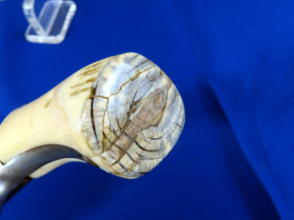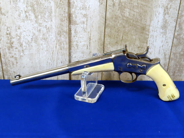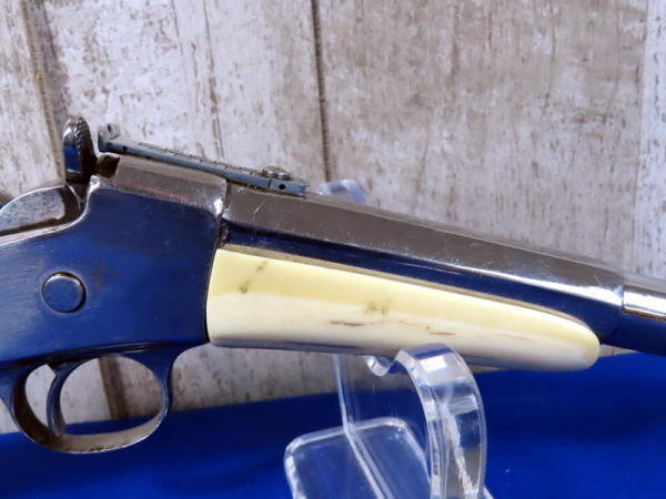 BLE; nice; 10.5" Oct. to Round stainless barrel; looks like a nickel finish; easy roll action; real bone grips & forearm; polished receiver; SN#3613