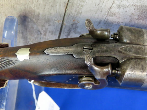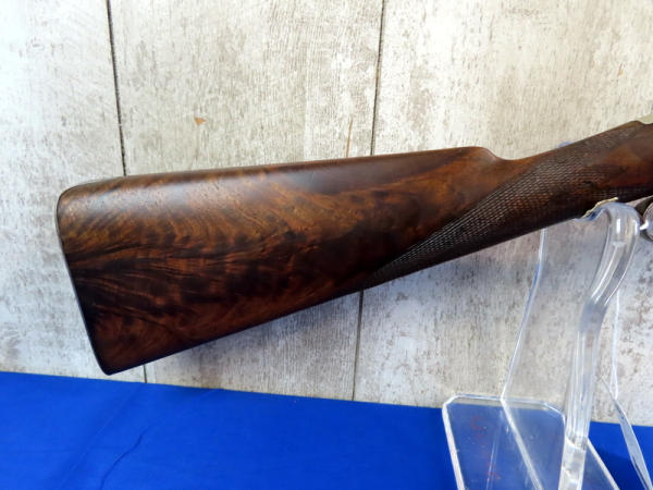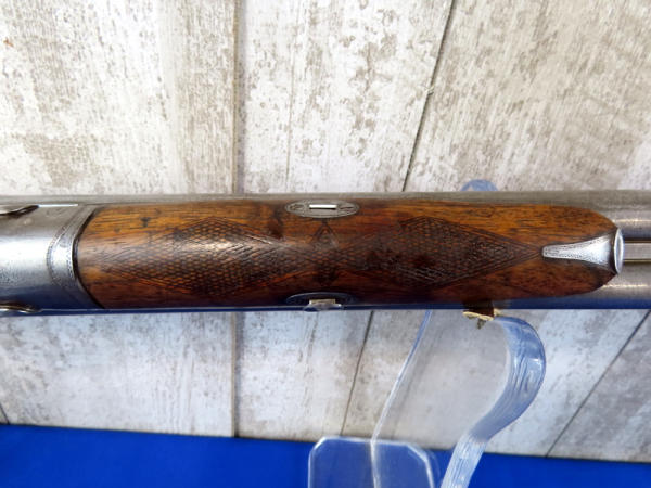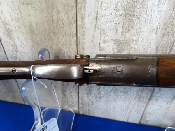 BLE; original; 28" BBLs; bluing thin; easy break action w/the release on bottom side of receiver; two triggers; factory scroll engraving on receiver & hammers; both mechs work; very nice wood w/checkering and great wood grain on stock; Damascus Steel BBLs; receiver is marked w/SN#F.9.R. B2852 & bottom tang has No.2867; great collector shotgun! No transfer needed