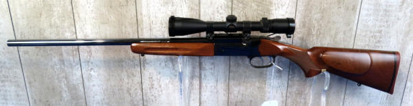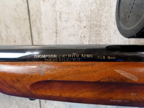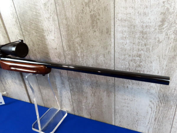 BLE; like new; 24" BBL; from the T/C Custom Shop; easy break action; Nikon Prostaff 3-9x40 scope; nice checkered wood stock w/a few minor field marks; two triggers; nice gun; SN#7285