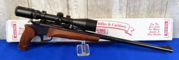 BLE; nice; 21" BBL; easy break action; original box for barrel; scope; wood grip & forearm; made in USA; SN#10358