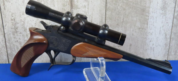 BLE; nice; 10" Oct. BBL; wood LEFT HAND Target grips; easy break action; Leupold M8-2x scope; has s few field marks; made in USA; SN#58103