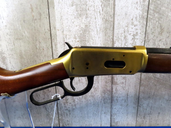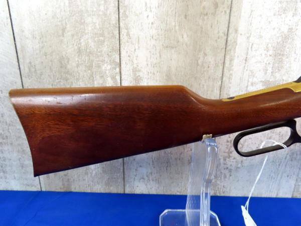BLE; nice w/original box; has some wear marks from storage; box has some wear as well; 26" Oct. BBL; gold receiver; smooth action; saddle ring; made in USA; SN#75185