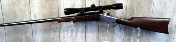 BLE; used; made by P.H. Bossen of Watertown, SD; 24" round BBL; wood stock w/steel crescent butt plate; Bushnell 6x Banner scope; easy action; stainless receiver; has some field marks; SN#109409