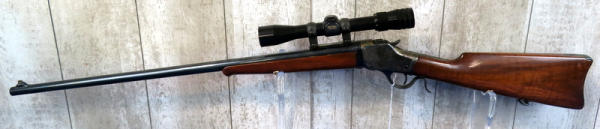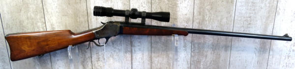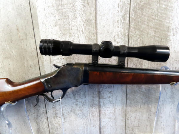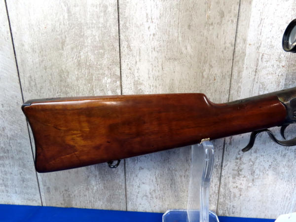 BLE; used; 28" Round BBL; wood stock; smooth action; Redfield Tracker scope; case hardened receiver; few field marks; SN#113239