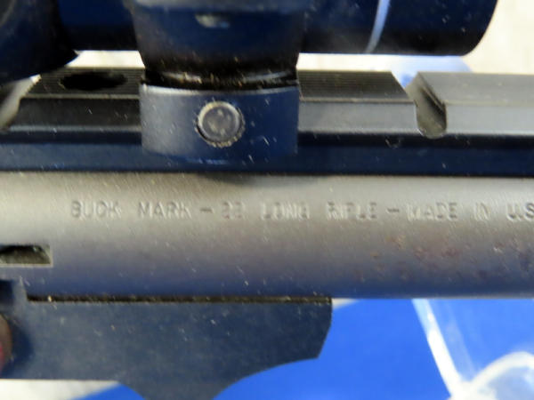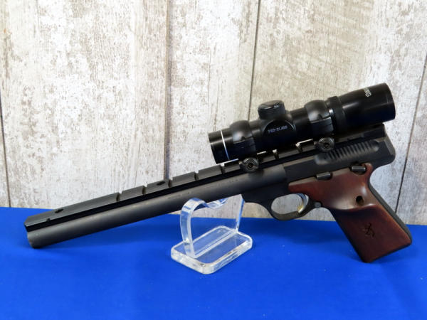 BLE; used; 10" BBL; has some pitting on barrel; wood grips; gold trigger; one magazine; full length picatinny rail; Tasco 2x22 scope; made in USA; SN#655NM19868