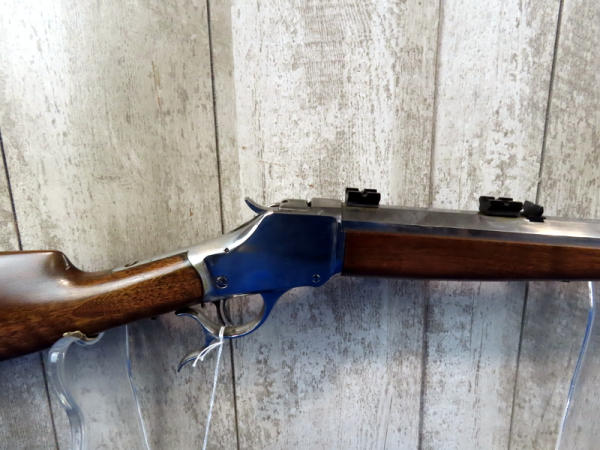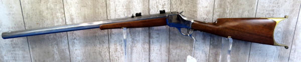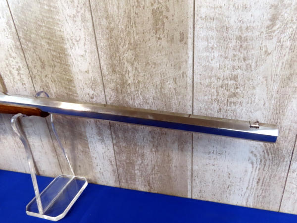 BLE; nice; 26" heavy Oct. stainless barrel; easy action; set trigger; large brass crescent Swiss butt plate; scope blocks; SN#11819