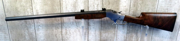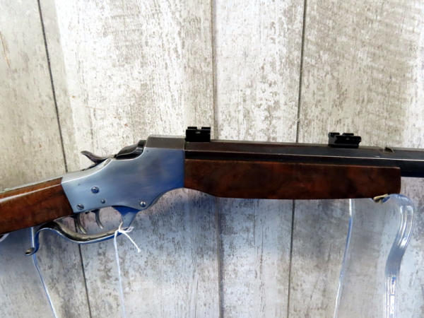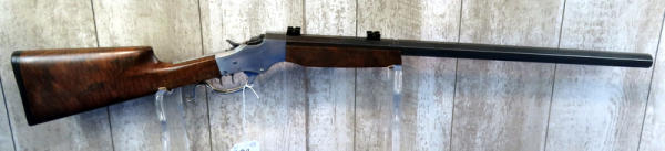 BLE; nice; 24" heavy Oct. BBL; scope blocks; missing rear sight; nice wood; bluing is dull; stainless receiver; smooth action; set trigger; SN#5431
