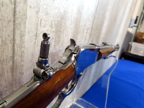 BLE; nice; very unique firearm; believe was an 1890 converted to a L/A nickeled custom; smooth action; 16" barrel; nice wood; front target sight w/rear flip up tang sight; could have possibly been some type of proto-type as well; a real conversation piece for your gun collection! SN#254608