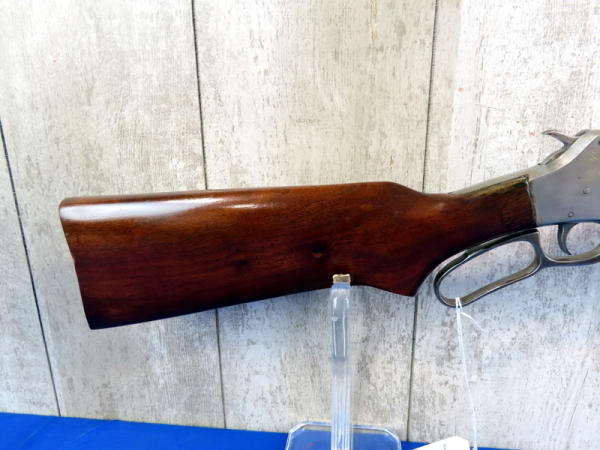 BLE; used; 24" BBL marked Mossberg, no front sight & bluing is dull; Martini receiver looks like bluing has been buffed off; smooth action; wood has been repaired behind receiver; no SN#; no butt plate