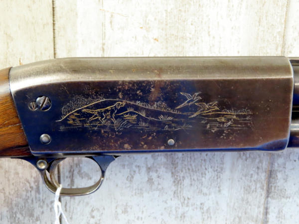 BLE; used; 30" Solid-Rib BBL; bottom eject; bluing is worn and has spotting n receiver; smooth action; wood stock has been cut & sanded from a pistol grip to a Euro stock; 2.75" chamber; FC; made in USA; no SN#