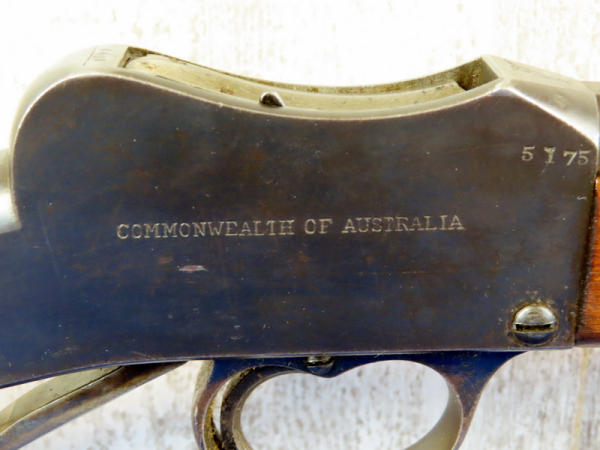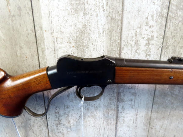 BLE; nice; 25" BBL; custom stock w/left hand shooter cheek rest; bluing is alittle dull; smooth action; made in Australia; SN#6603 & 5175
