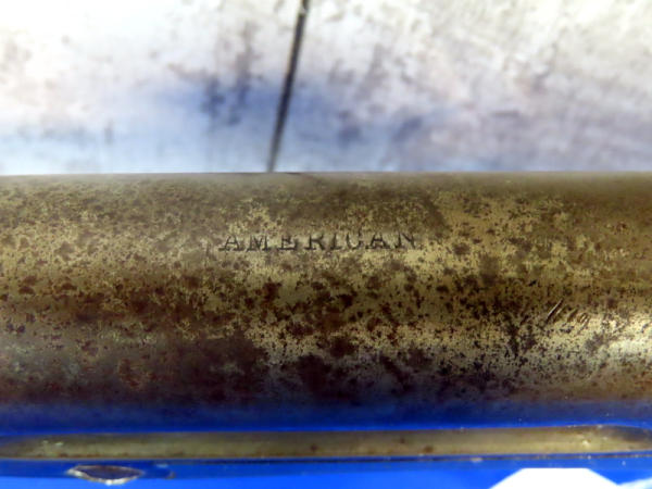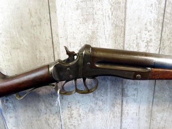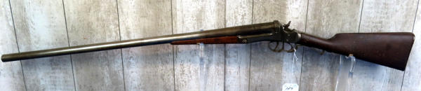 BLE; used; double trigger guard; front trigger releases barrel; 34" BBL!; wood stock wiggles; made in USA; FC; SN#1843