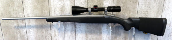 like new; 22" Stainless barrel; black synthetic stock; smooth action; Simmons 3-9x50 Blazer scope; Kolpin Ammo Sleeve; made in USA; SN#710-07171