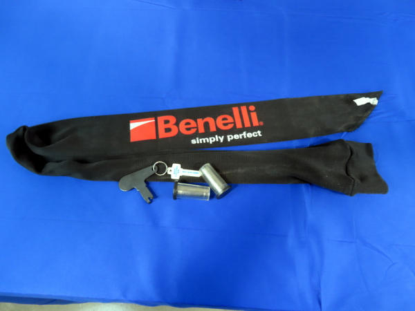 like new; 26" VR-BBL w/hy-vis front sight; black synthetic stock; Bushnell Red-Dot sight works; includes Benelli gun sock; chokes & choke tool; 2.75" & 3" chamber; made in Italy; B-Square Picatinny rail mount and Limb Saver recoil pad; nice set-up; SN#CA045970
