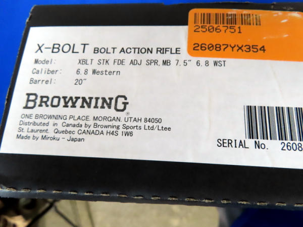 mint & unfired; 20" BBL; 1-7.5" twist; muzzle break; removable magazine; adjustable cheek rest; desert sand tan synthetic stock; scope mount ready; original box; made in Japan; SN#26087YX354