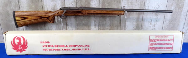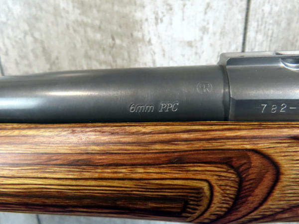 PJE; very light use, very clean; 26" heavy varmint stainless barrel; smooth action; wood grain laminate stock w/wide forearm; original box; made in USA; SN#782-60212