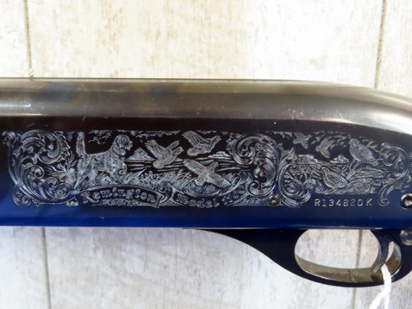 like new; 21" VR-BBL; highly engraved receiver; very nice wood w/checkering; 2.75" chamber; Rem chokes; made in USA; SN#R134820K