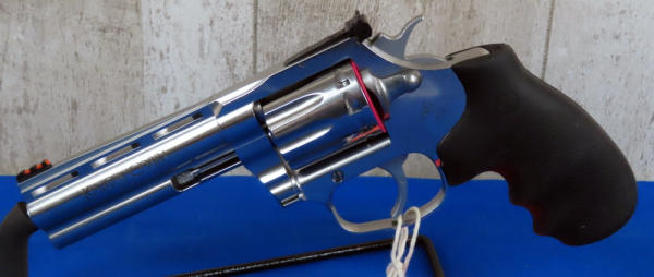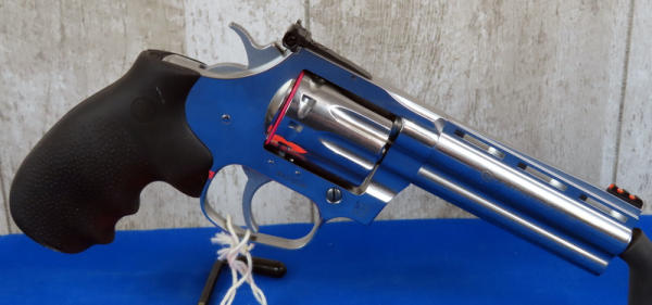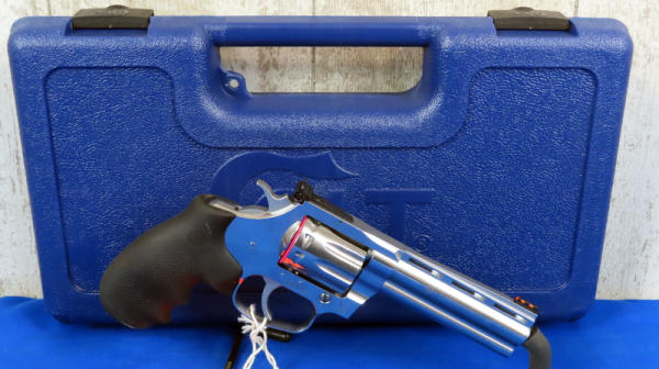 mfg. 2024; 4.25" stainless VR-barrel; hy-vis front sight; factory rubber grips; mint & only test fired; 10-shot swing out cylinder; factory hard case; made in USA; SN#RA370749