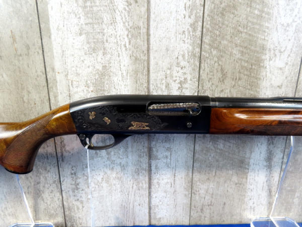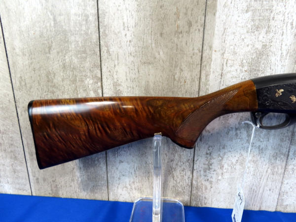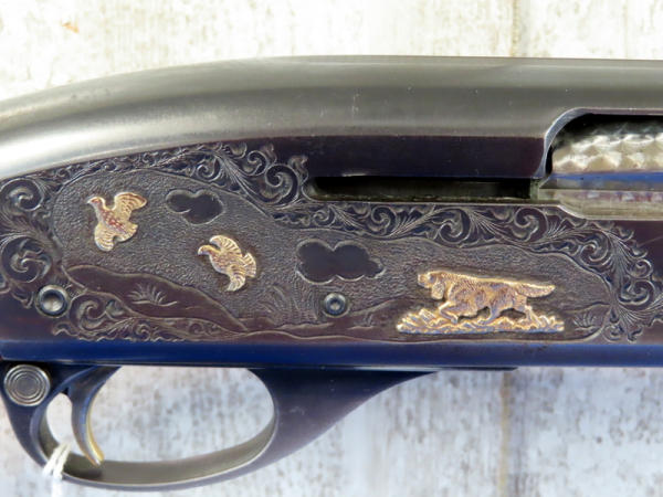 nice; hard gun to find; 24" VR-BBL w/Lyman-Cuttz Muzzle Break; custom engraved receiver w/gold inlay; very nice checkered wood stock; 2.75" chamber; gold trigger; made in USA; SN#4022791
