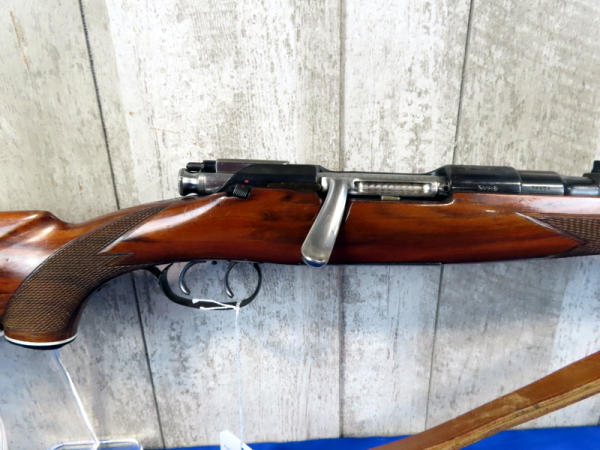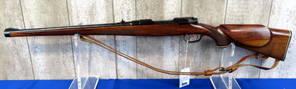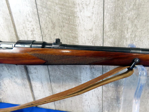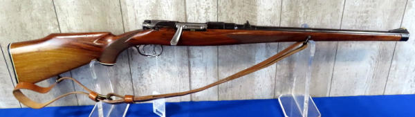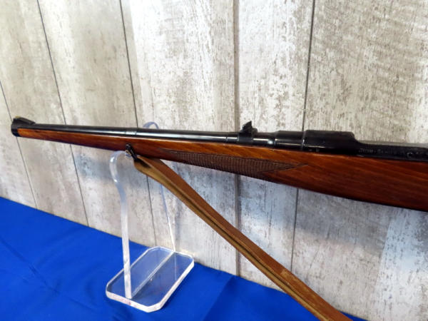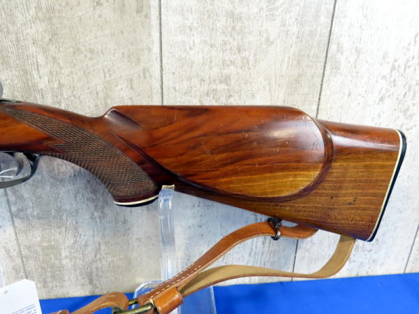 nice; very hard to find this gun, let alone in this kind of shape! 21" BBL; smooth action; leather sling; very nice checkered stock, has a couple minor marks & dings from use; double trigger; great collector firearm! Believe mfg. 1968; SN#36578