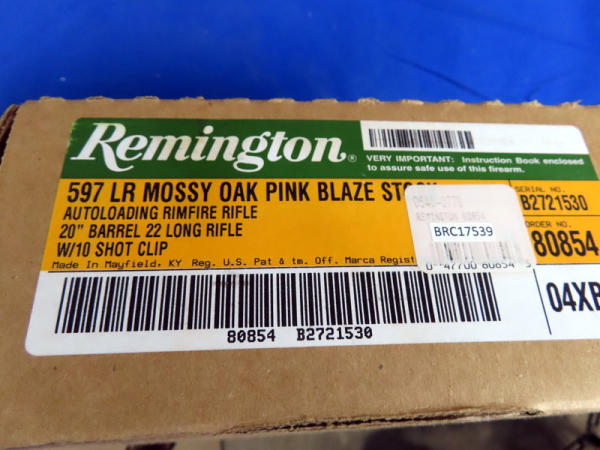 mint & NIB; 20" BBL; one magazine; Mossy Oak Pink Blaze Camo synthetic stock; hy-vis front sight; made in USA; original box; SN#B2721530