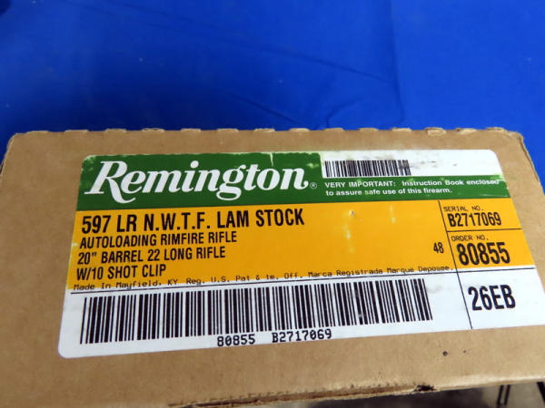 NIB; 20" BBL; wood grain laminate stock w/NWFT "Salutes America's Veterans" logo in stock; comes with a commemorative coin; one magazine; original box; made in USA; SN#B2717069