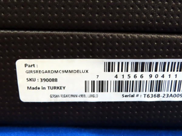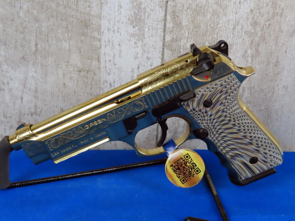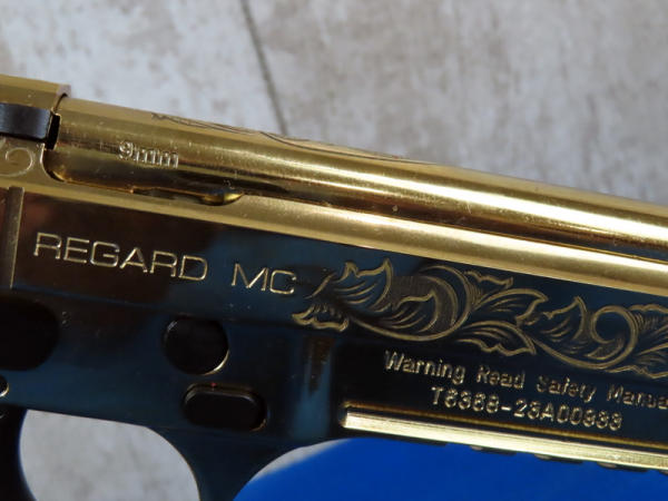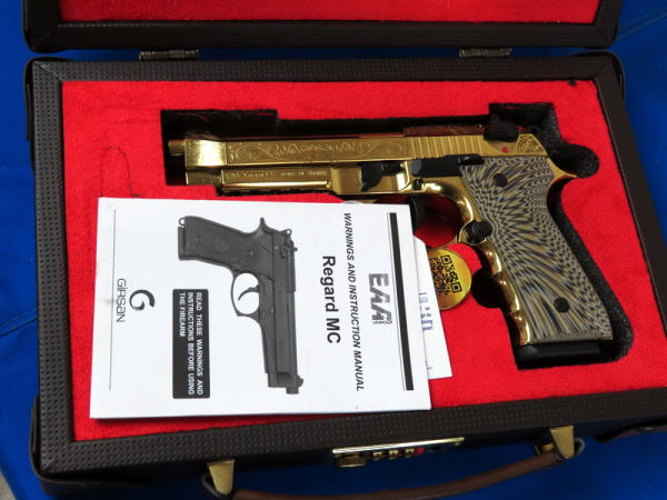 4-7/8" Gold Finish Barrel; composite grips; has engraving on slide; made in Turkey; one magazine; factory leather brief case style case; night sights; SN#T6368-23A00933