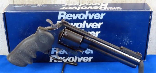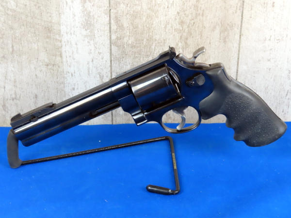 PJE; like new; 6" BBL; dial front sight; case hardened hammer; Hogue rubber grips; smooth unfluted 6-shot swing out cylinder; fully targeted; made in USA; original box; SN#AZD0143