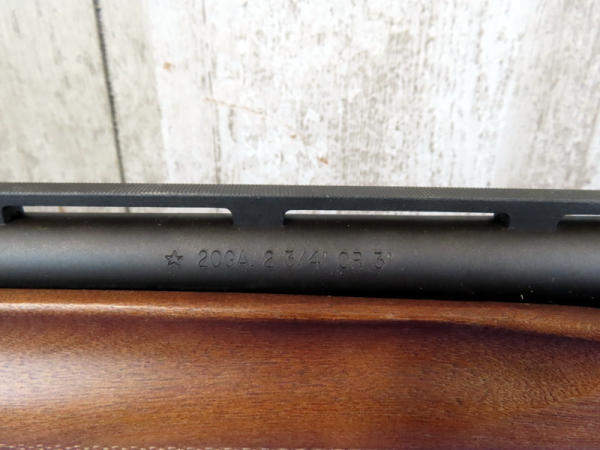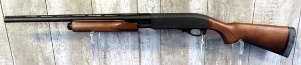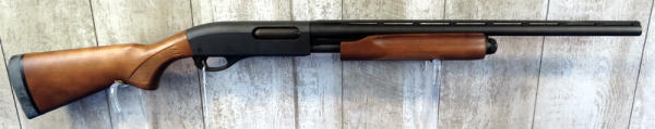 like new; 21" VR-BBL; smooth action; flat black finish to meta; checkered wood stock; 2.75" & 3" chamber; Rem choke; made in USA; SN#RS04571X