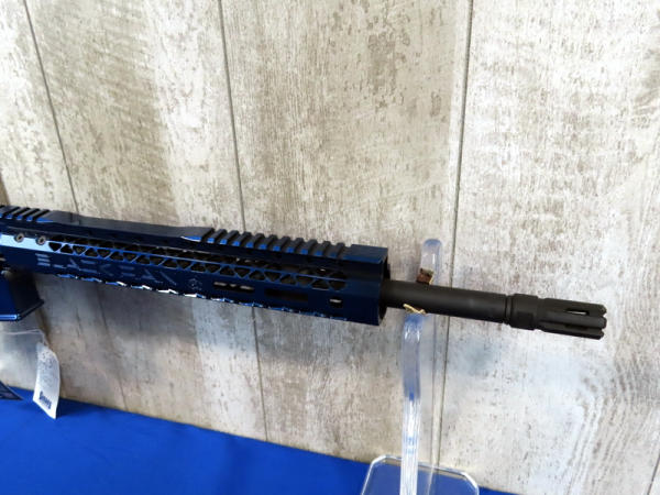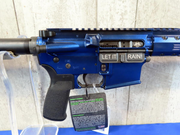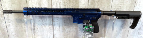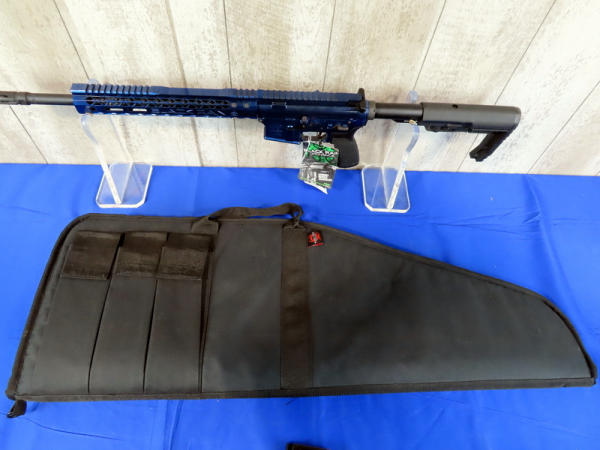looks mint & unfired; original hang tag; beautiful metallic blue finish; 16.5" BBL w/flash hider & 1/7 twist; one magazine; factory soft case; extendable stock; made in USA; SN#SX009118; AR-Terms