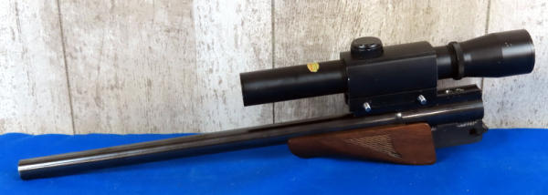 barrel is not a T/C brand, it's an Ingram; 14" Rnd. BBL; wood forearm; older scope w/fine crosshairs; no Transfer needed