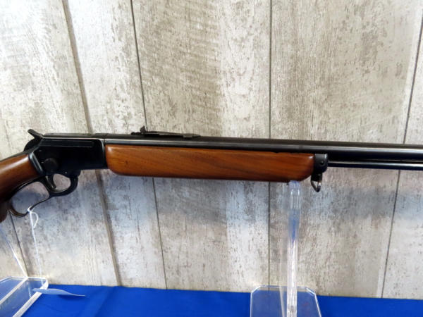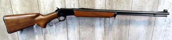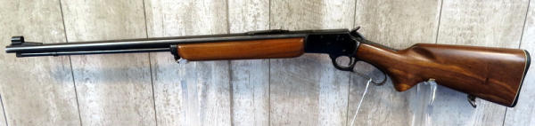 nice; smooth action; 24" BBL; nice wood w/thick forearm; does have some small cracking on the stock behind receiver on left side; globe front sight; has a few marks & dings on receiver tube from use & storage; made in USA; SN#J14635
