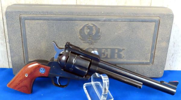 7.5" BBL; smooth wood grips; made in USA; has a few scratches on bottom side of barrel; factory hard case; used; SN#48-05504