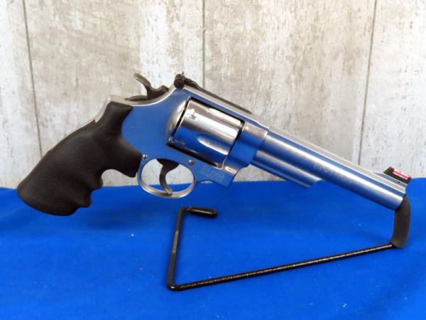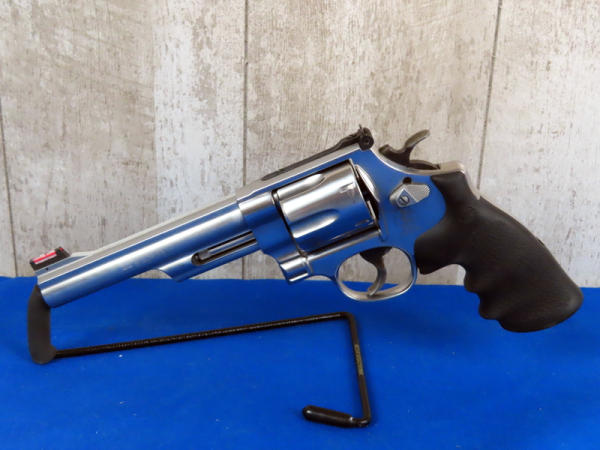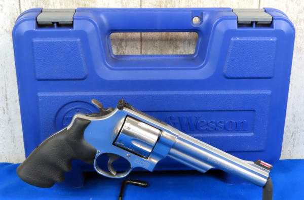 6" Stainless barrel; fully targeted; rubber grips; hy-vis front sight w/rear white outline; 6-shot swing out cylinder; very light used; factory hard case; made in USA; SN#CNZ6580