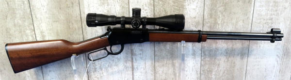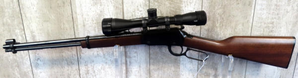 like new; 18.5" BBL w/globe front sight; smooth action; hammer extension; wood stock; Cabela's 3-9x40 scope; made in USA; SN#1016078H