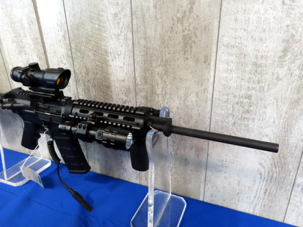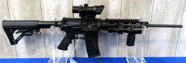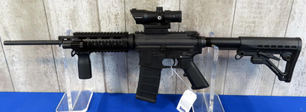 like new; 16.5" BBL; 1/9 twist; Barska Optic, flash light, front pistol grip, extendable stock, laser sight & one magazine! Made in USA; SN#BK3003960; AR-Terms