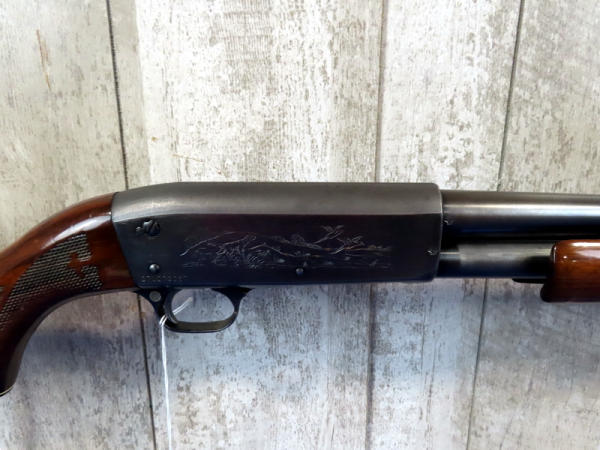 used; 26" BBL w/Hartford Deluxe Poly-Choke; smooth action; nice wood stock w/some minor field marks; bluing is alittle thin; factory engraved receiver; 2.75" chamber; made in USA; SN#371073057
