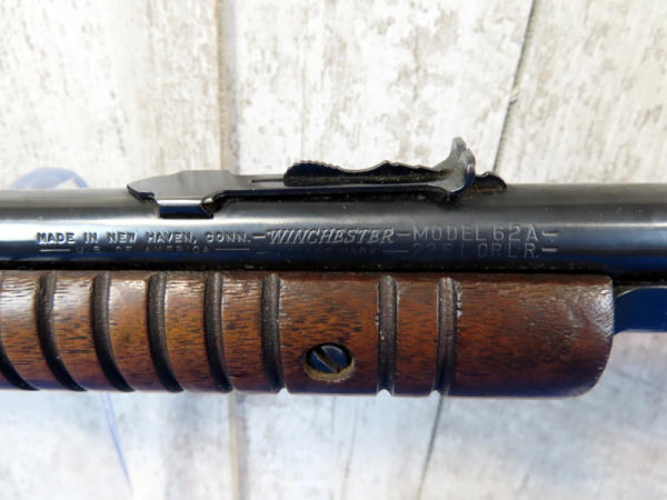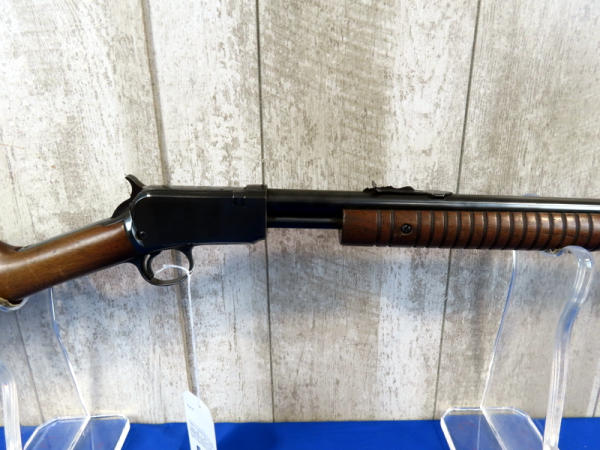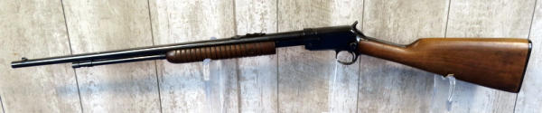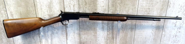 nice; 23" BBL; pump action is alittle tight, needs some lube; wood has light use marks; spot of bluing missing off top of barrel; made in USA; SN#236670