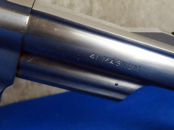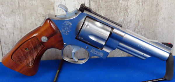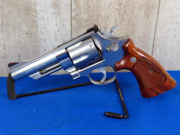 PJE; 4" Stainless barrel; fully targeted; wood checkered grips; front sight painted red; 6-shot swing out cylinder; used; made in USA; SN#AJS2761