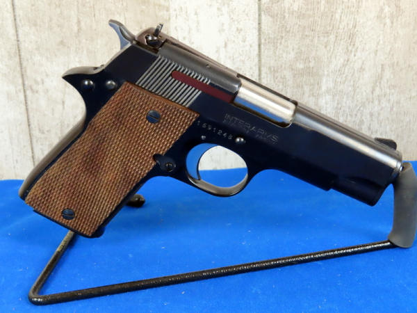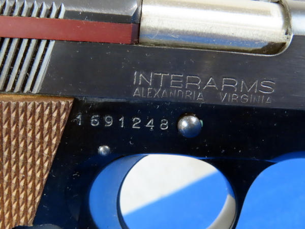 PJE; 4" BBL; like new; checkered wood grips; factory plastic case; includes cleaning rods; one magazine; made in Spain; marked Interarms Alexandria, Virginia; SN#01691248