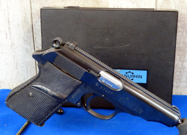 PJE; resembles a Walther; 3.75" BBL; night sights; Pachmyer rubber grips; factory hard case; two-magazines & an extra pair of grips; made in France; marked Alexandria, Virginia; SN#53457LR