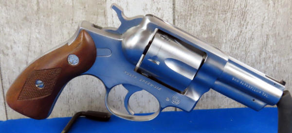 PJE; 2.75" Stainless barrel; wood checkered grips; 6-show swing out cylinder; light use; front night sight; one of the few Ruger revolvers that are DA & swing out cylinders; made in USA; SN#158-14589