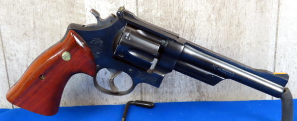 PJE; 5.75" BBL; smooth wood grips; TG, TT; 6-shot swing out cylinder; used; painted front & rear sight; made in USA: SN#N91178