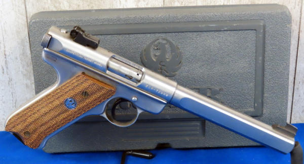 7" Stainless barrel; wood checkered target grips; 2-magazines; factory hard case; used; made in USA; SN#218-72009