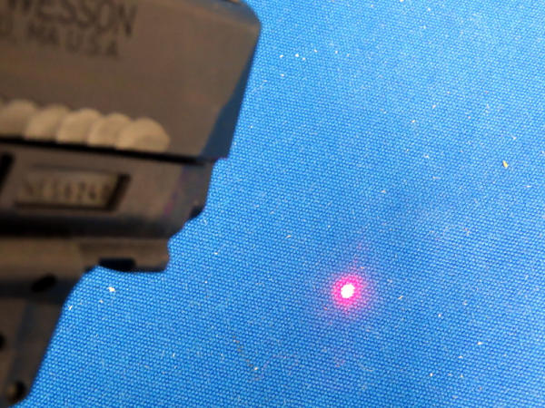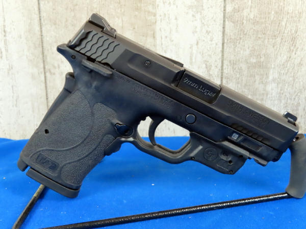 used; 3.5" BBL; night sights; black synthetic frame; 2-magazines; red crimson trace sight works; factory box; made in USA; SN#NES6240