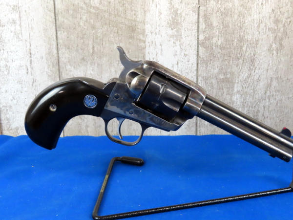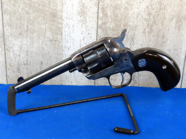 like new; 4.5" BBL; case hardened receiver; black birds head grips; 6-shot fixed cylinder; factory hard case does not match gun; made in USA; hard caliber to find in the Single-Six! SN#650-40260